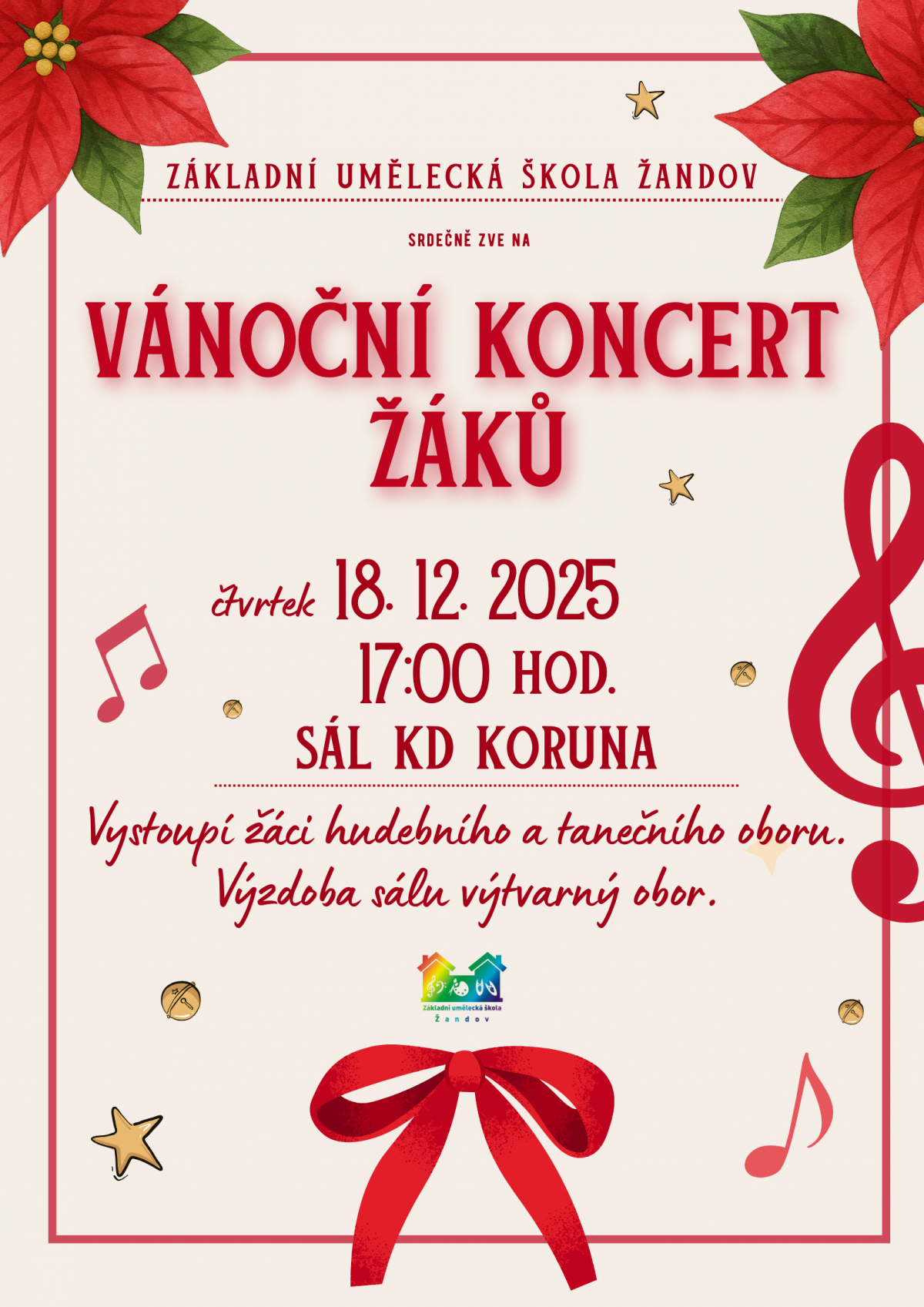 Poslední koncert roku 2025 naší školy. Nenechte si ho ujít. Bude stát určitě za to!
